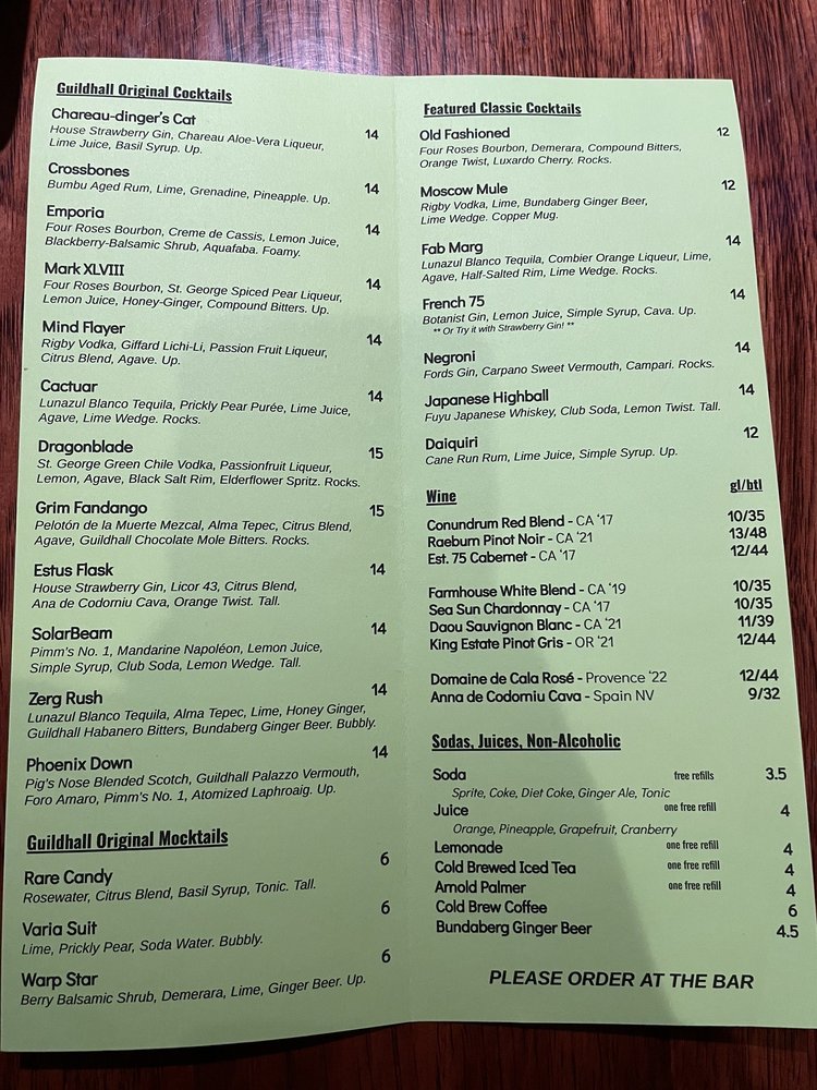 GuildHall, a gastropub and beer bar located in Burbank, CA, is a haven for gamers, board game enthusiasts, and casual diners alike. With a diverse menu offering vegan and vegetarian options, along with exciting specials like the Black Currant Margarita and Duck Tacos, GuildHall caters to a wide range of tastes. The atmosphere is inviting, with themed decorations and a welcoming space for groups to gather and enjoy. Customers rave about the food, with standout dishes like the Crispy Chicken Strips and Grilled Chicken Sandwich receiving high praise. The addition of board games and a full bar enhances the overall experience, making GuildHall a unique and enjoyable dining destination. Whether you're looking for a fun night out or a place to relax with friends, GuildHall promises a memorable and satisfying experience.